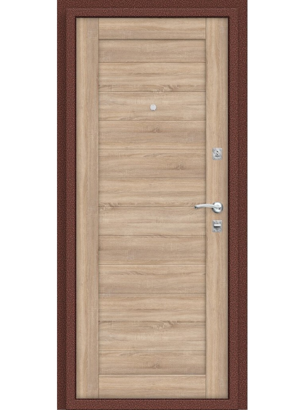 Стальной дверной блок произведен на уникальных автоматизированных линиях и роботизированных комплексах ведущих зарубежных производителей. Качество Сертифицирован для РФ по ГОСТ 31173-2016. Наивысшие классы по эксплуатационным характеристикам (1) и прочности (М5). Сертификат POCC RU.AM05.H03178. Особенности Цельногнутая конструкция полотна и закрытый цельнокатаный профиль коробки. Стабильно точные геометрические показатели, которые обеспечиваются высокой степенью автоматизации и роботизации производства. Марка стали Высококачественная конструкционная углеродистая сталь (08пс). Окраска Индустриальная полиэфирная порошковая краска с предварительной антикоррозийной обработкой (фосфатированием). Отделка снаружи Стальной лист с декоративным тиснением. Отделка внутри Декоративная панель с возможностью замены. Толщина 22 мм, Эко Шпон (Германия, Южная Корея). Регулировка Дверь укомплектована эксцентриком, правильная регулировка которого обеспечивает легкость открывания двери и беспрепятственную работу замковых механизмов. Уплотнение Три контура высококачественного EPDM-уплотнителя (Швеция). Усиление Три горизонтальных усиливающих омега-профиля (ребра) придают конструкции необходимую прочность и жесткость. Сверхпрочная конструкция "6x2" - двойная толщина стали профиля полотна, двух контуров коробки, в зонах замка и петель. Дополнительную стойкость ко взлому обеспечивают два противосъемных штыря с цинковым покрытием (для защиты металла от коррозии). Утепление полотна Внутри полотна установлена конструкционная теплоизоляционная панель SIP (Structural Insulated Panel), которая не только обеспечивает необходимую теплоизоляцию, но и придает дополнительную жесткость и прочность дверному блоку. Крепление Двери крепятся анкерными болтами через коробку (8 отверстий) или с использованием монтажных пластин (6 шт. в комплекте). Внимание! Дверь предназначена для установки в тамбуре или под защитным козырьком. Толщина полотна/коробки, мм 80/80 Толщина стали полотна/коробки, мм 0,8 Ширина наличника, мм 36 Размер проема в свету, см 193/76 Масса нетто, кг 55,3 Объем, куб.м 0,33